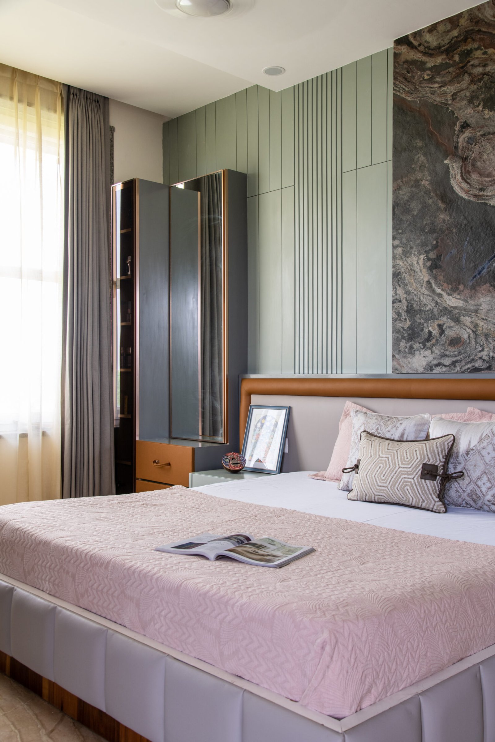 We began with the site itself—the treetop views and forest rhythm inspired the home’s connection to nature. Large openings and expansive windows were designed to frame greenery, while natural light was woven into every corner. The master bedroom extended this narrative with soothing green tones and an open, airy plan. Interiors were styled with restraint: sleek finishes provided a modern foundation, while heirloom furniture, vintage artworks, and curated accessories layered in heritage and warmth. Every decision balanced modernity with memory, minimalism with richness, creating a home that is as soulful as it is sophisticated.