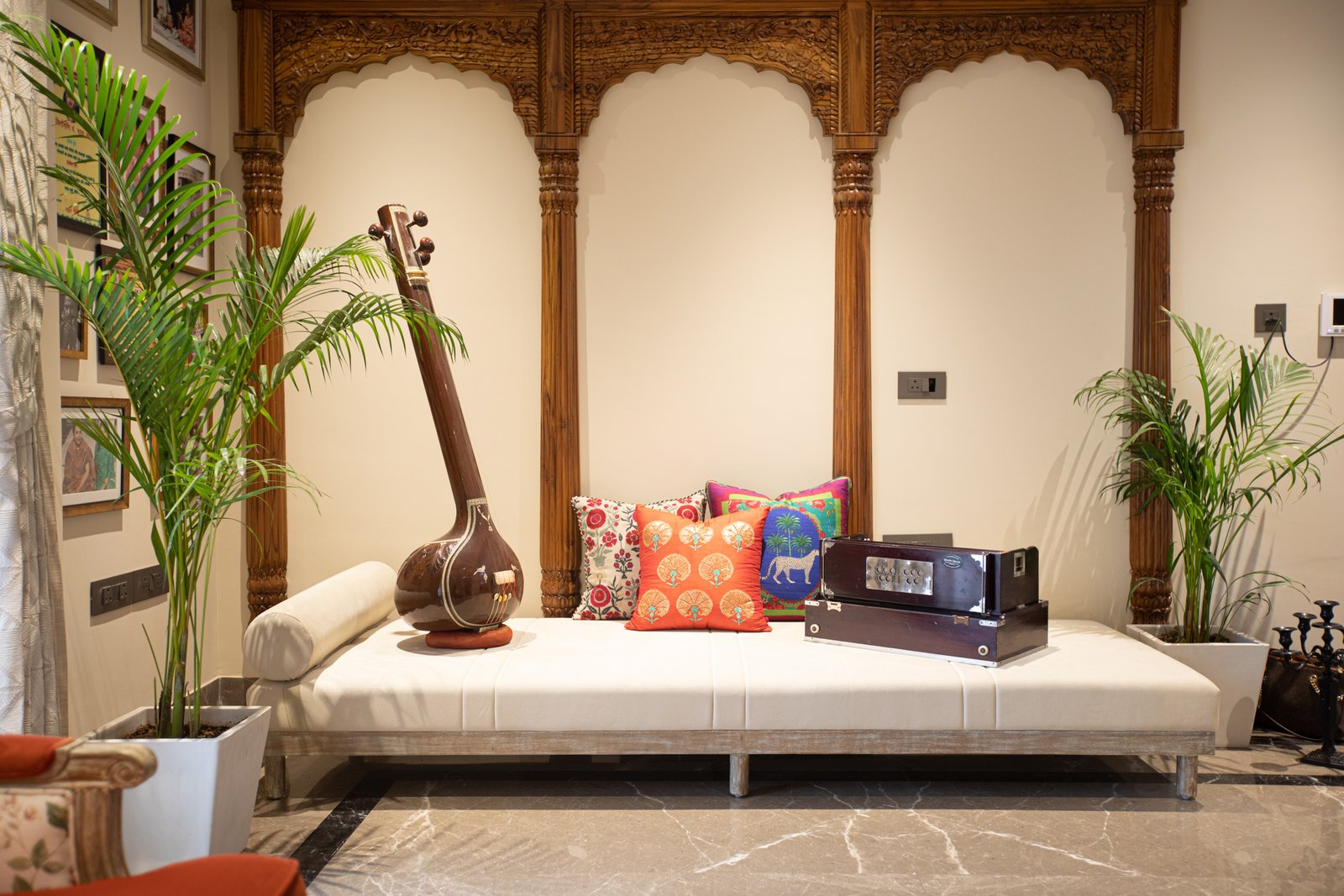The design was inspired by the family’s Benares roots—infusing cultural heritage, Indian craftsmanship, and personal artistry into a modern home.