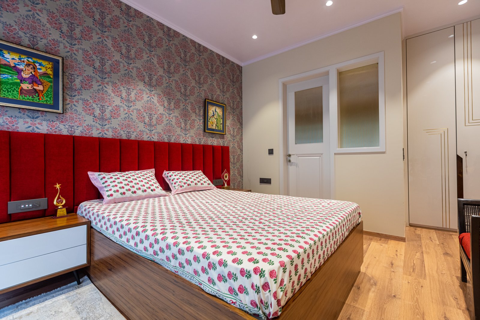 By blending traditional details like teak arches and Tanjore paintings with clean finishes and contemporary layouts, the design feels timeless yet fresh.