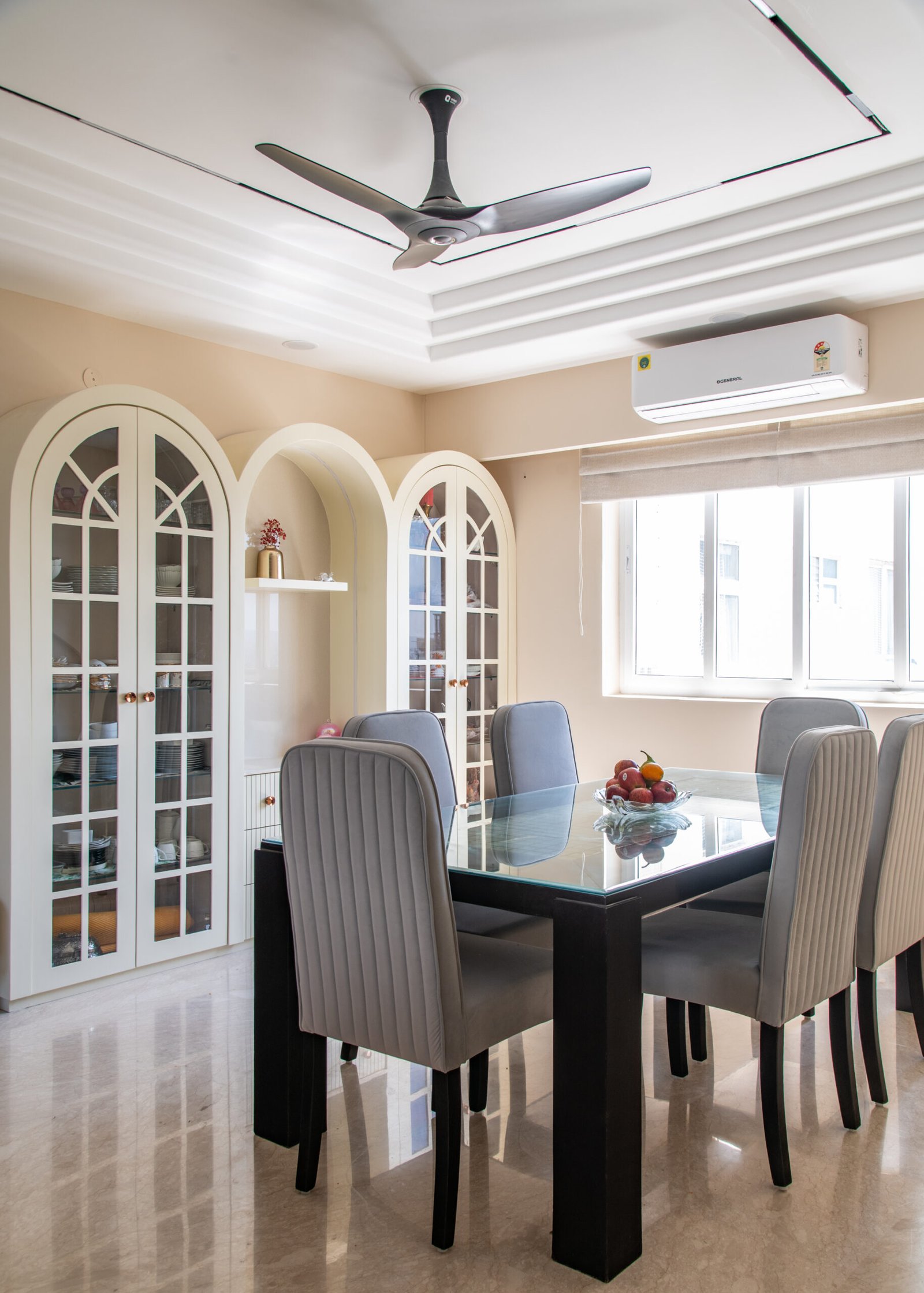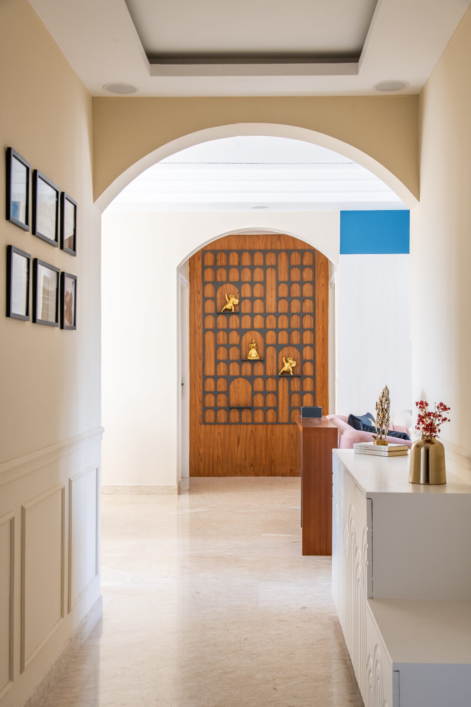 For this Gurugram residence, we preserved the original exterior while giving it a refined modern touch. Interiors were redesigned for flow, with grand drawing rooms opening into verandahs and courtyards that invite light and greenery. Natural stone inlays, carved woodwork, and layered lighting add timeless character, while thoughtful detailing ensures the home feels both majestic and welcoming.